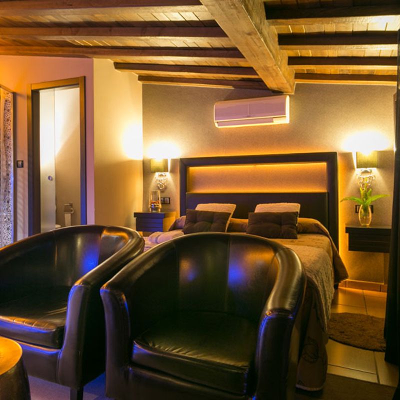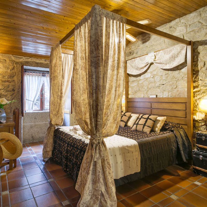* Superficie: 18m2 (la más pequeña) Habitaciones dobles con 1 o 2 camas que combinan perfectamente lo urbano y lo rural para crear ambientes ideales para el descanso y el confort. Disponen de baño propio y constan de televisión, calefacción suelo radiante, Mini Bar, secador de pelo, amenities, etc. (Una de las habitaciones con 2 camas juntas, convertida en King Size de 210 x 190). También dispone de barbacoa y mesas en la finca de uso compartido con los demás huéspedes así como de piscina-jacuzzi también de uso compartido. Disponemos de servicio de lavandería