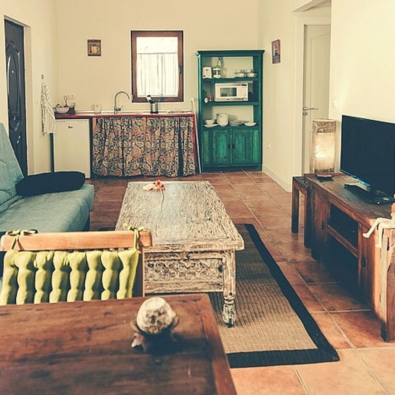 Cuenta con una habitación con cama de matrimonio, un baño y dos plazas más de descanso en el sofá cama del salón. Además de todo el menaje de cocina necesario para pasar unos días fuera de casa. También proporcionamos toallas y ropa de cama y que tú solo tengas que traer la mejor de las energías para descansar y recargar pilas.