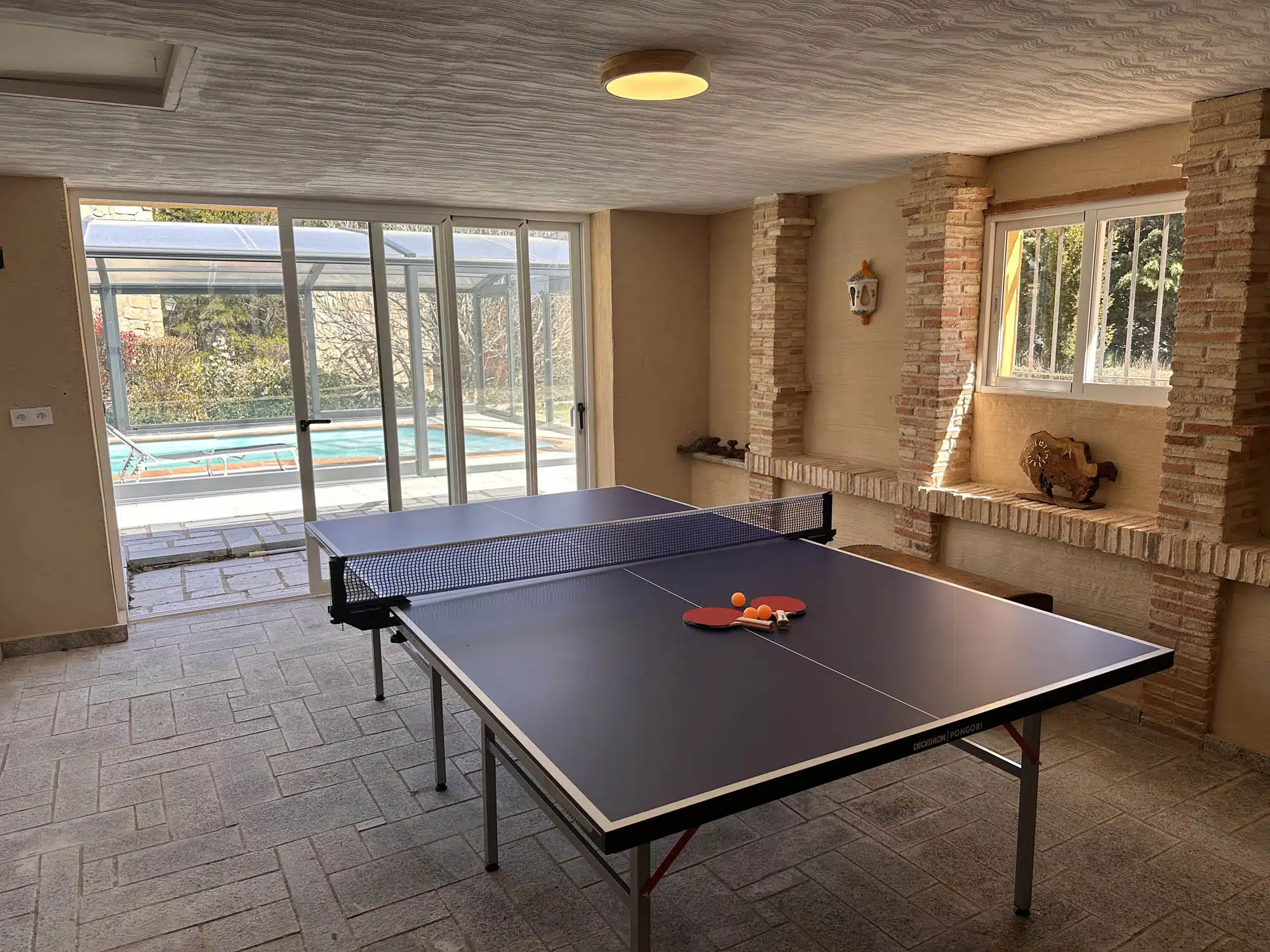 Dentro encontraremos un amplio salón comedor con TV de 55´, 4 dormitorios, 3 baños completos, cocina y una sala con mesa de Ping Pong.